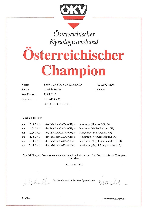 We have focussed on showing Saredon First Alexandria in Western Europe where she has achieved excellent success, and has become an International Champion.
