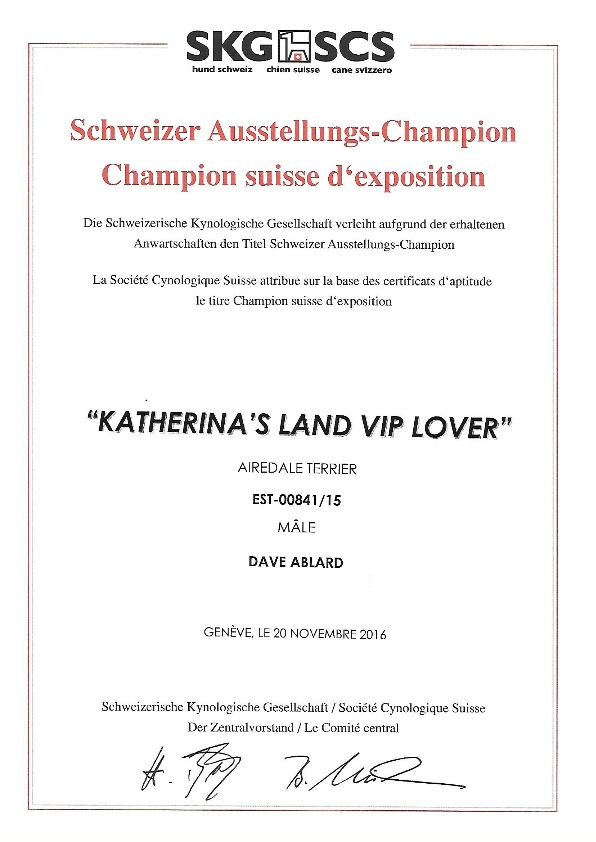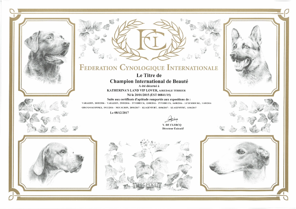 He won his first European CACs at the young age of 9 months, at his first single breed show.
