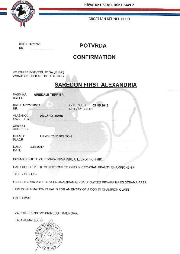 We have focussed on showing Saredon First Alexandria in Western Europe where she has achieved excellent success, and has become an International Champion.