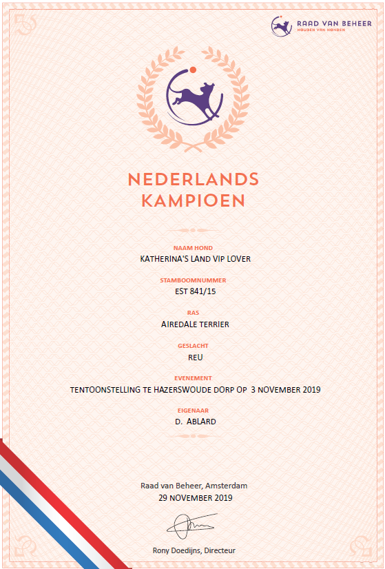He won his first European CACs at the young age of 9 months, at his first single breed show.